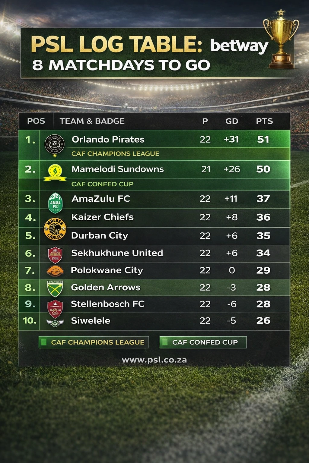 Pirates Lead the Charge. Betway Premiership Title Race Is Heating Up With just a handful of games left in the